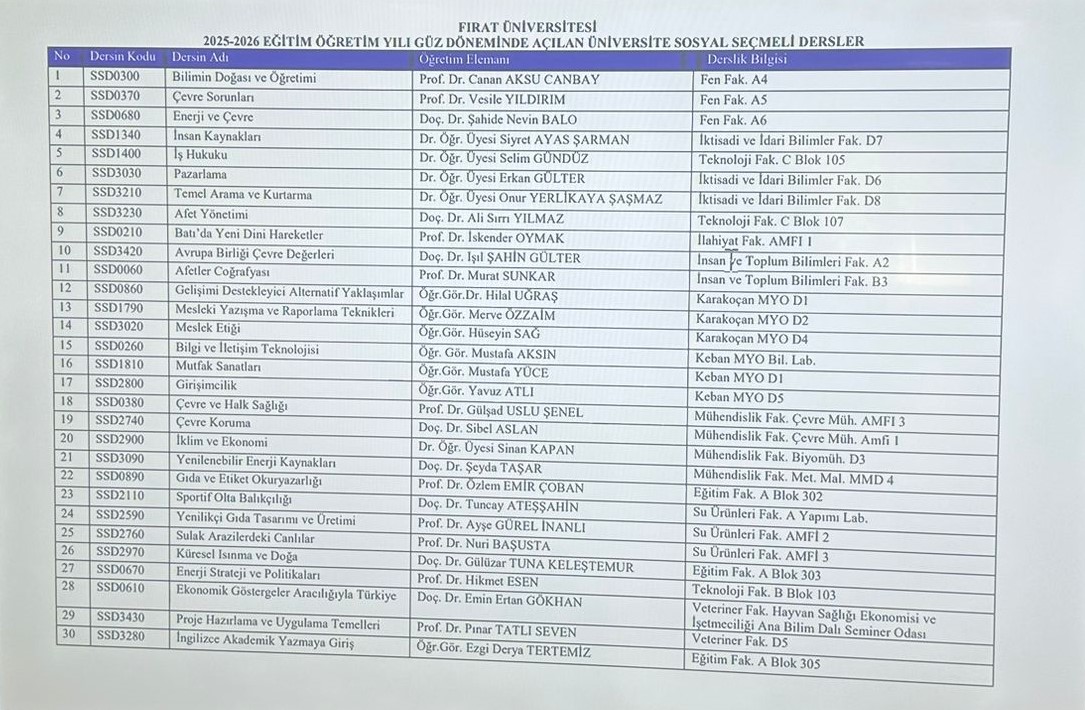 CLICK HERE FOR THE CLASSROOMS AND INSTRUCTORS OF THE 2025-2026 ACADEMIC YEAR FALL SEMESTER SOCIAL ELECTIVE COURSES...